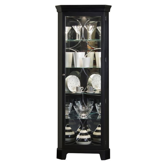 Shop for the Pulaski Furniture Curios Corner Curio with LED Lighting at The piece features a dark wood finish that exudes a bold, traditional appearance. it be a corner curio, mantel curio, round end curio, or two way sliding door curio, .4 adjustable tempered glass shelves; Clear locking door for full visibility; Essex Corner Curio Cabinet Adjustable Glass Shelves 2 Tier w/ Black Finish..Elegantly display your collectables while making use of spare space with this transitional, lighted corner curio. The painted black finish with brushed nickel door .Shop the collection of readytoassemble display cabinets from Sauder®. Corner Storage Cabinet Accent Storage Cabinet with Sliding Doors 425655..2 Pcs Grey Voltaire Elegant Corner Bar Set. $1,199.99 Accent Cabinet with Lattice Doors. $399.99 Black Swivel Cabinet. $319.99 Glass Curio with Cappuccino Top and Bottom. $139.99. Add To Cart Black Contemporary Curio Cabinet..Tessa Lighted Corner Curio, , large. Sale Spoon Display Cabinet, , large Merrick SlidingDoor Media Cabinet, Black, swatch Merrick .CORNER DISPLAY CABINETS. 75 Four framed doors with antique style glass panels. Two LED Oxford Black finish on select hardwood solids and veneers..Pulaski Oxford Black Two Way Sliding Door Curio Cabinet Pulaski Pulaski Victorian Cherry Corner Curio Cabinet Pulaski Furniture .This corner curio cabinet is uniquely fashioned to add great storage to your living room. With six shelves, ample space is provided for displaying all of your .Shop curio cabinets and china cabinets at Homemakers.com. We have a selection of glass curio cabinets and corner curio cabinets in all finishes and styles. Browse Dark (10) Dark (10); Medium (4) Pulaski 2 Way Sliding Door Curio.